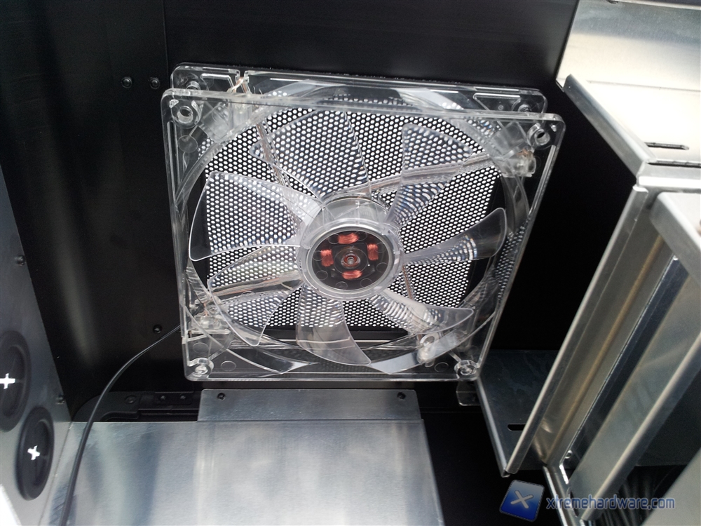 Come detto nelle pagine precedenti, il Cubitek Mini Ice permette l'utilizzo di due ventole da 140mm, una di queste è già posizionata nella parte superiore, è prodotta dalla stessa Cubitek e, grazie all'utilizzo della plastica trasparente e di quettro LED ad alta luminosità blu, donerà all'elegante case un poco di grinta.