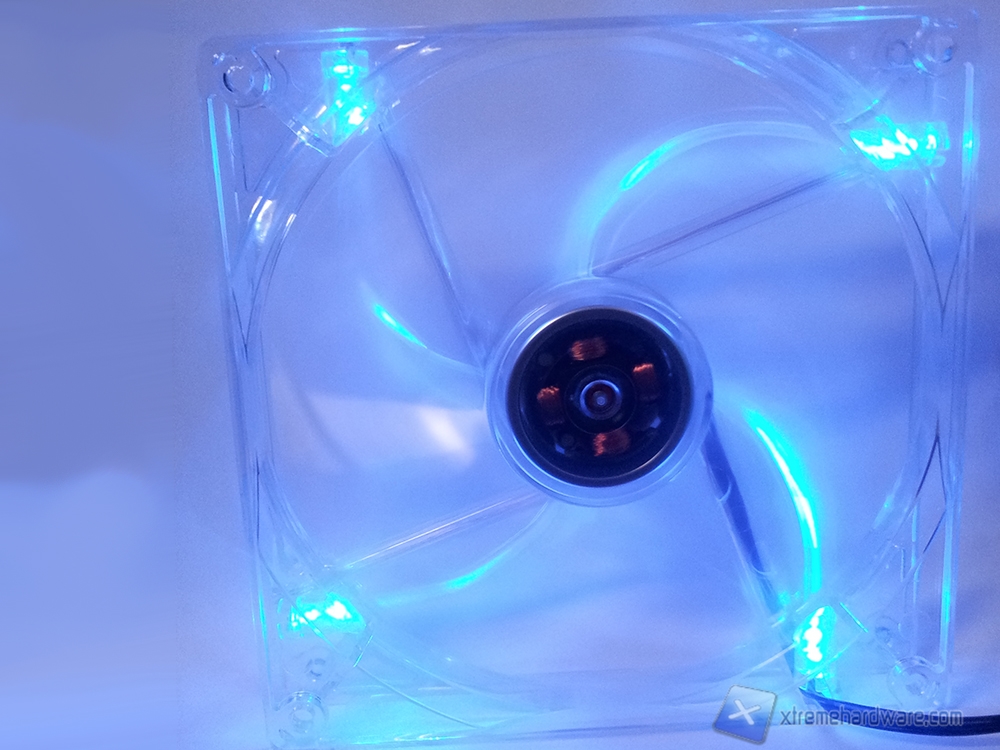 La ventola preinstallata è molto silenziosa, i LED sono di grande effetto ma non possono essere spenti. Seppur non controllabile, il flusso prodotto è buono ma non particolarmente elevato. Il segnale tachimetrico della ventola fa segnare una velocità di rotazione di circa 1200RPM.