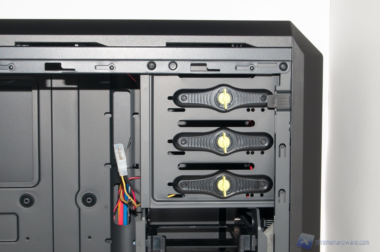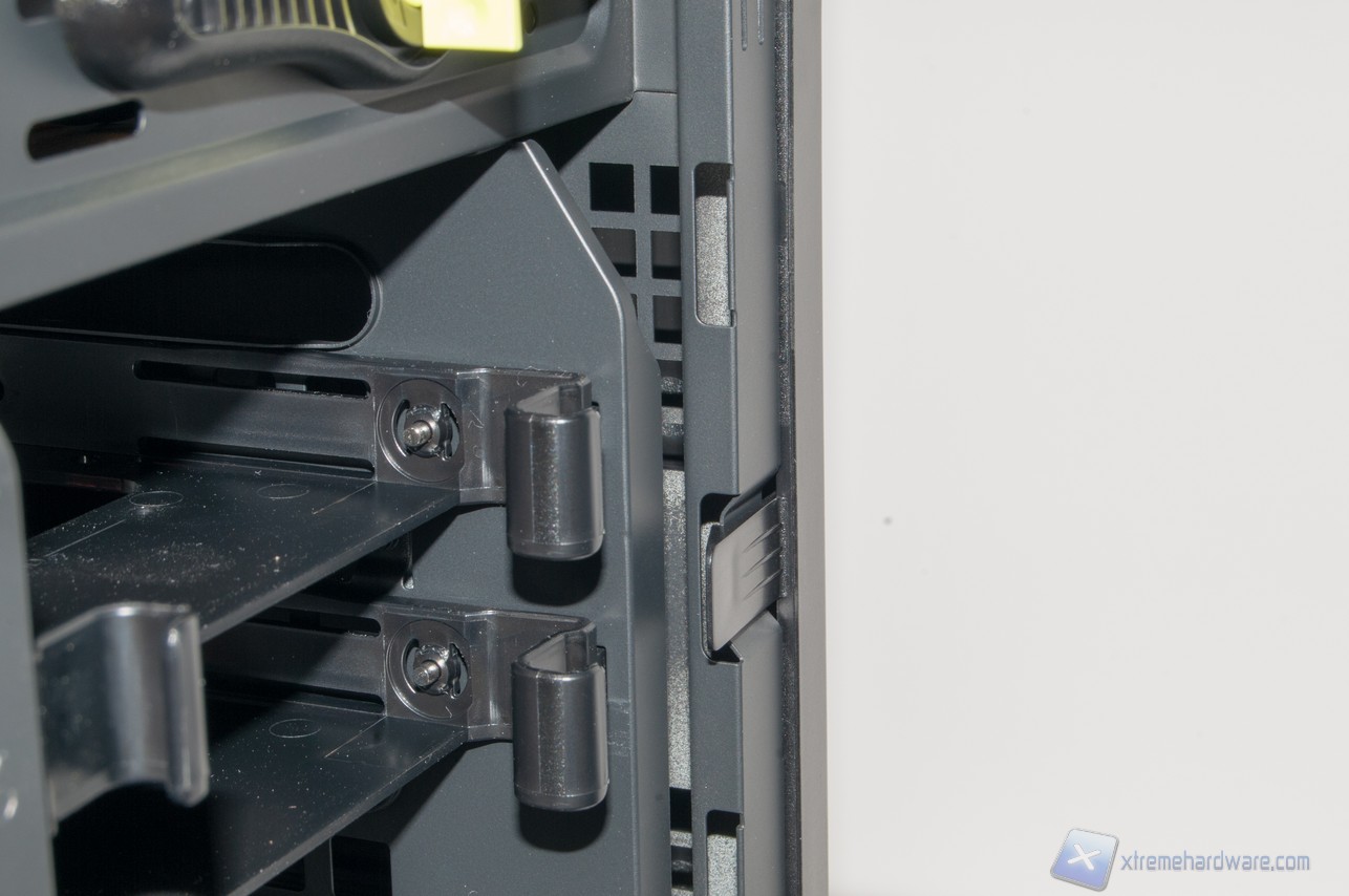 Nel primo caso troviamo, nella parte più alta, tre vani da 5.25" con altrettanti sganci rapidi in plastica.