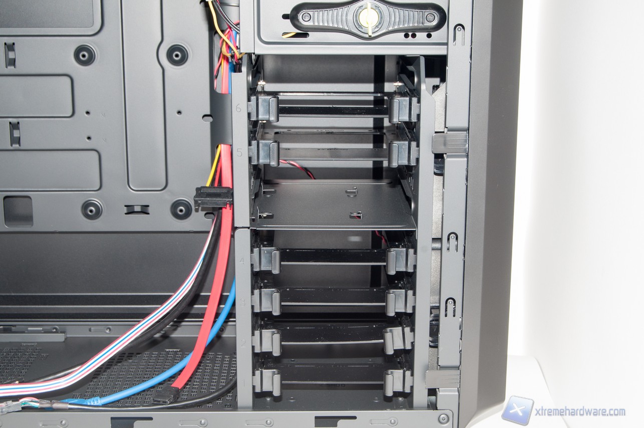 Per quanto riguarda i dischi rigidi, invece, abbiamo la possibilità di installare fino a 6 unità da 3.5" e da 2,5" utilizzando gli appositi bay estraibili oppure aggiungere un settimo hard disk a stato solido tra gli spazio 5 e 6.