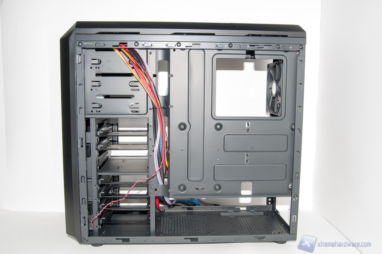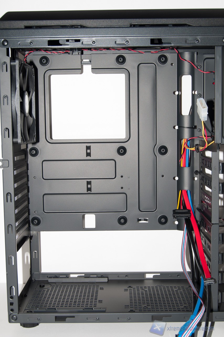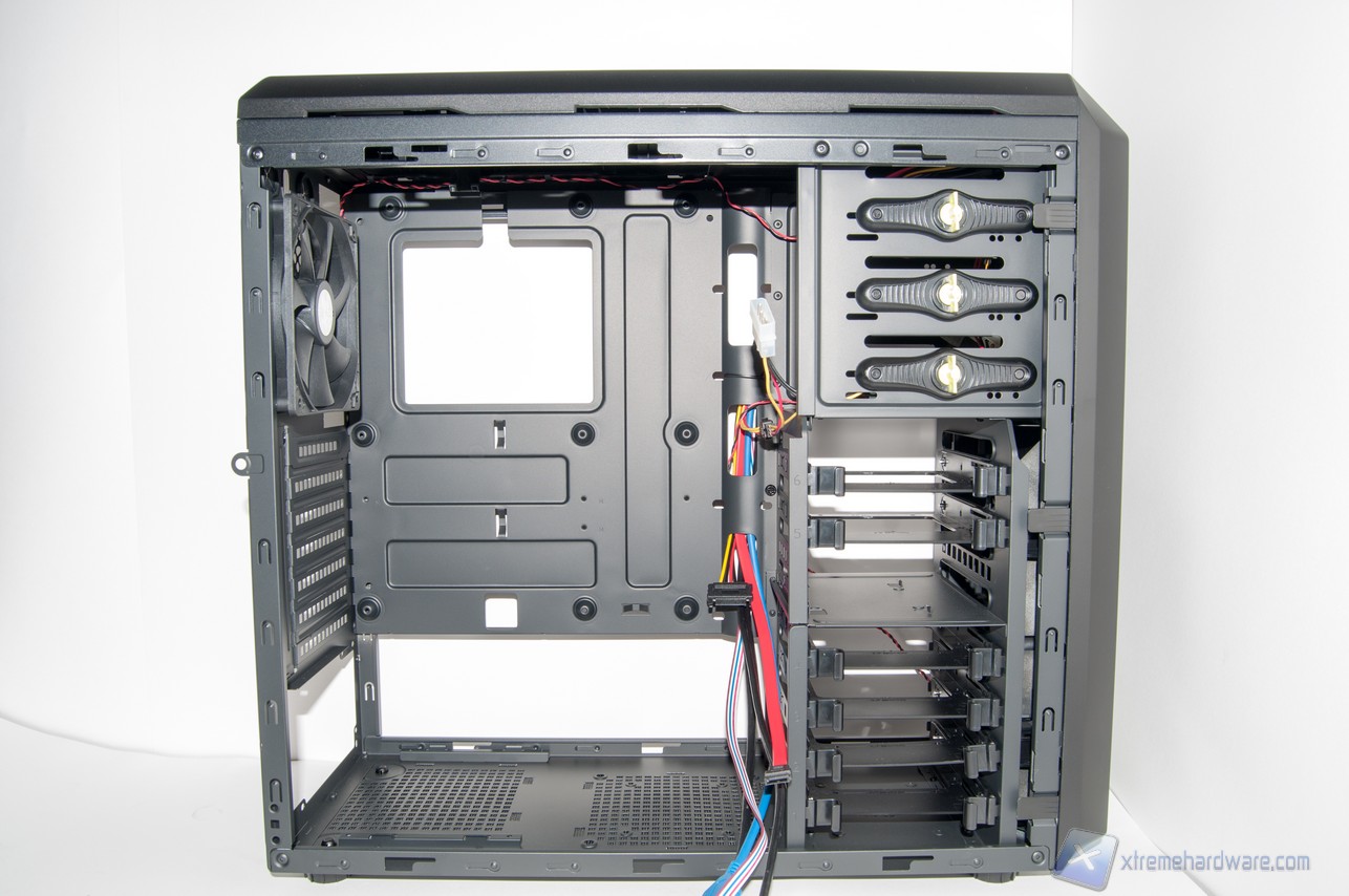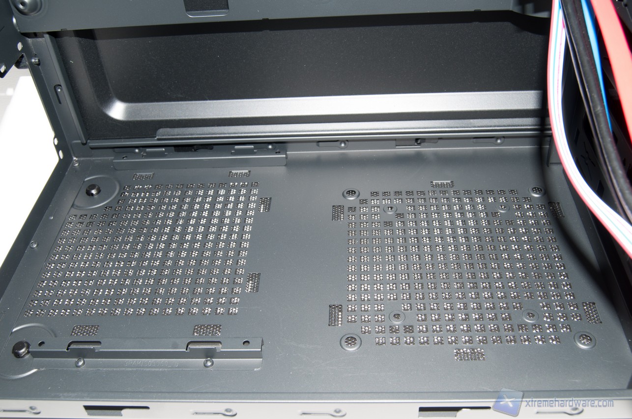 Non troviamo ovviamente predisposizioni per una doppia alimentazione ed il cablaggio dei cavi è comodo grazie all'ampia apertura sotto il piatto della scheda madre.