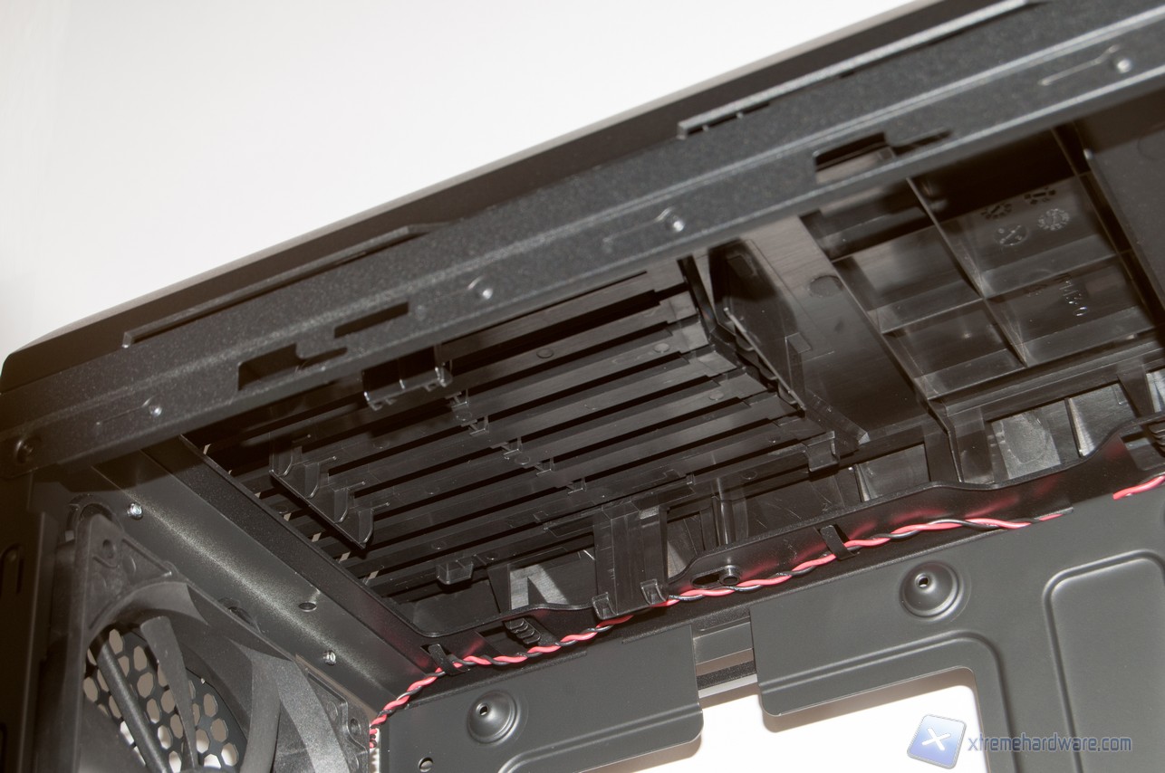 Notiamo anche un discreto spazio tra il piatto della scheda madre e lo spazio per l'inserimento di un’unità di dissipazione superiore, quindi possiamo inserire in questa posizione un radiatore da 120mm in versione slim accompagnato da una ventola.