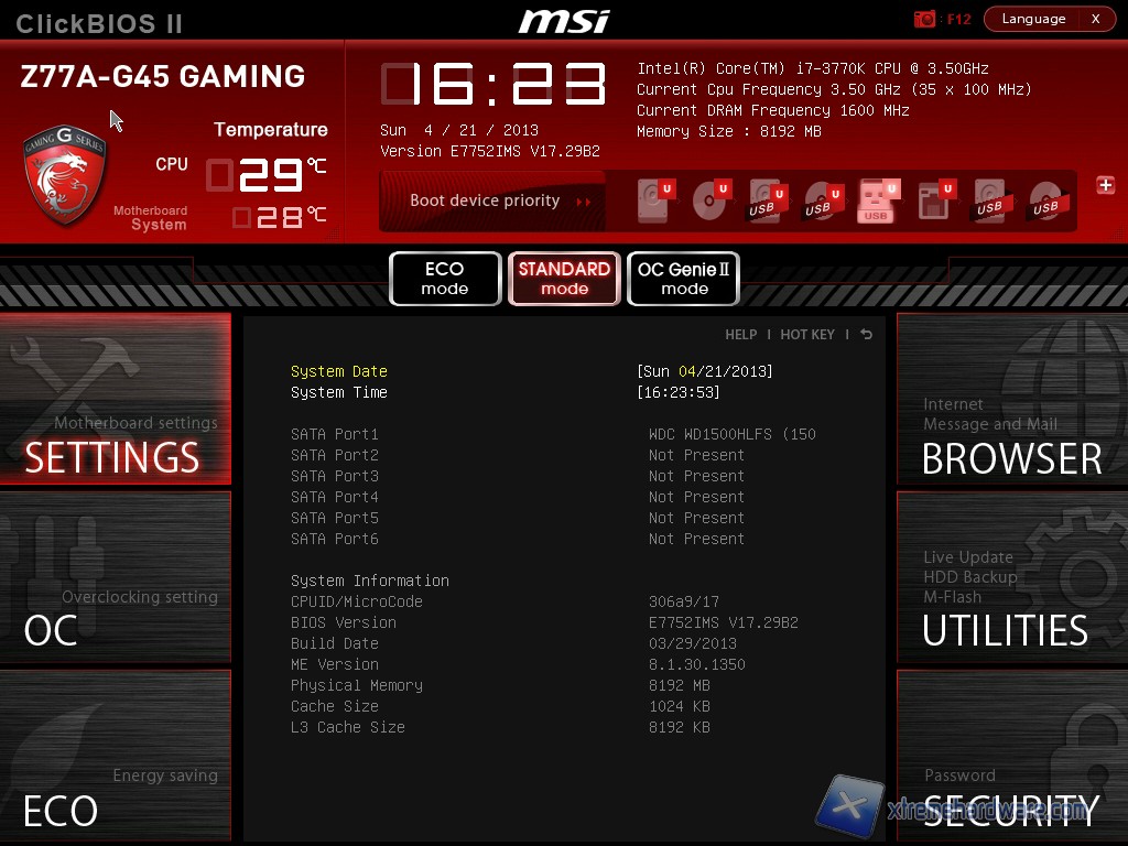 In SETTINGS si agisce sui parametri dei vari dispositivi connessi al chipset tra cui le periferiche di memorizzazione SATA, USB, la sezione di monitoraggio delle temperature e dei voltaggi del sistema nonché del regime di rotazione delle ventole connesse al sistema tramite i vari attacchi visti in precedenza. Abbiamo ancora le impostazioni inerenti alle varie porte di comunicazione come Bluetooth, WiFi, la modalità SATA (RAID/AHCI/IDE) e la sezione audio. Poi troviamo la nuova voce per il Fast Boot con Windows 8.